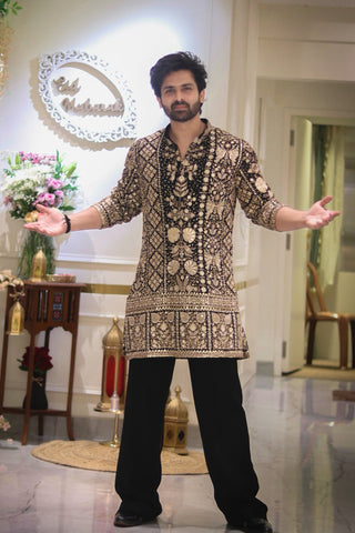 SHOAIB IN SANJH CUTDANA BLACK SHORT KURTA SET
