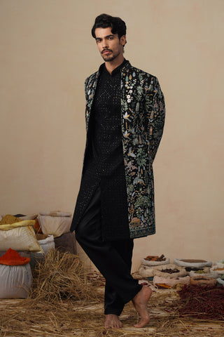 - Sherwani Black with Cutdana and Zari Work