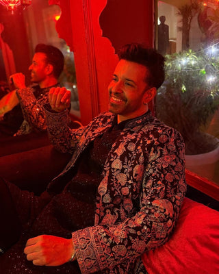 Amar Mauve purple Front open Kurta patiyala set with dupatta