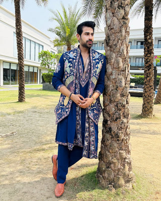 Aayushman Aman Maheshwari in Faiz Wild Grace Navy Blue Kurta Jacket Set
