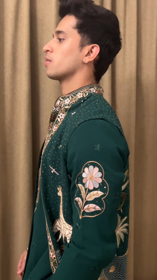Aayush Keshri in FOREST BOTTEL GREEN KURTA JACKET SET