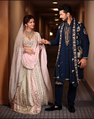 Abhinav Shukla in Maahir Cocktail Navy Blue Kurta Jacket Set